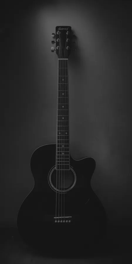 A beautifully captured acoustic guitar in a monochrome setting, showcasing its elegant design and craftsmanship.