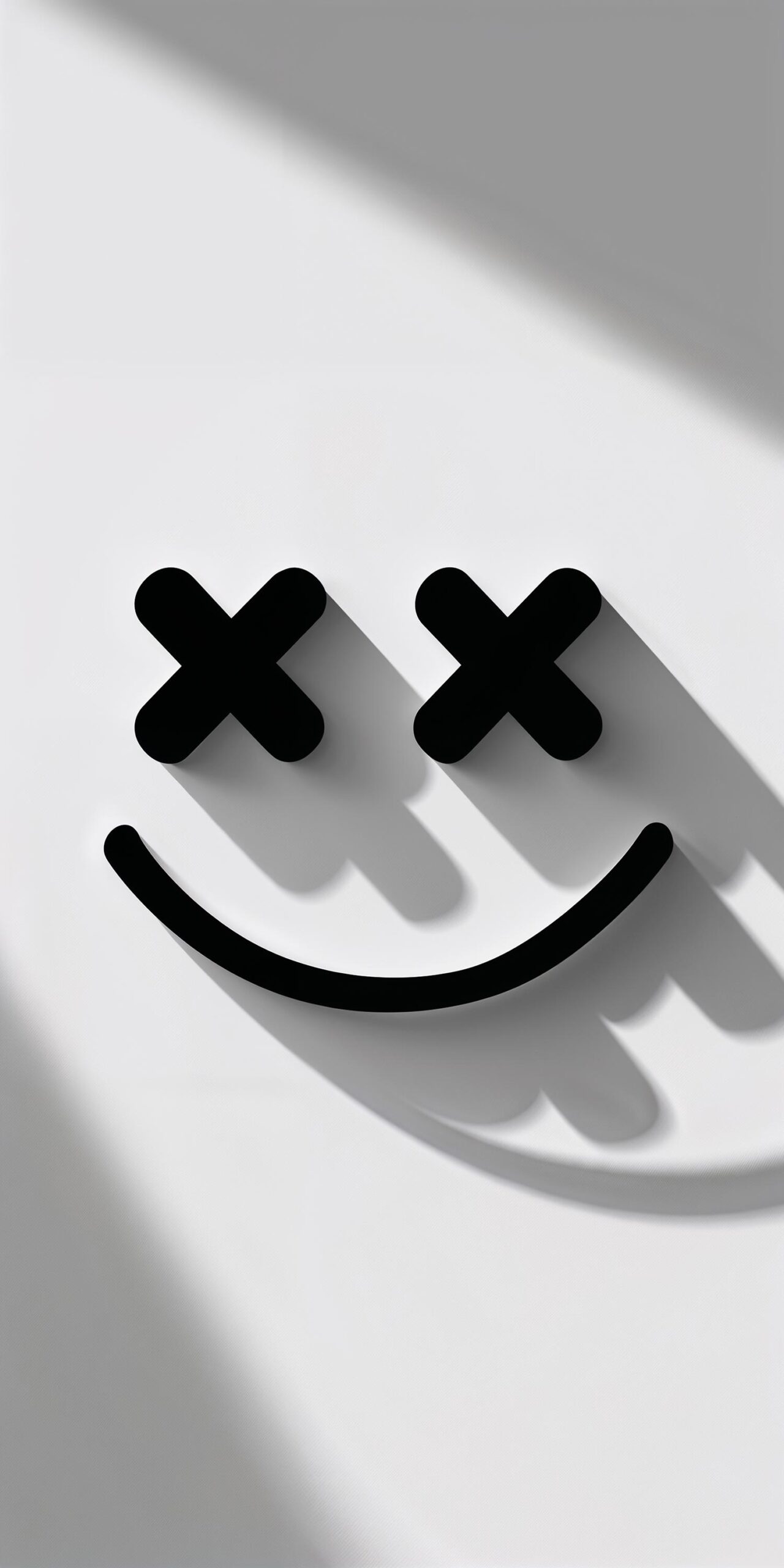 A sleek black-and-white digital wallpaper featuring a simple cartoon smiley with ‘X’ eyes and a curved ‘C’ mouth.