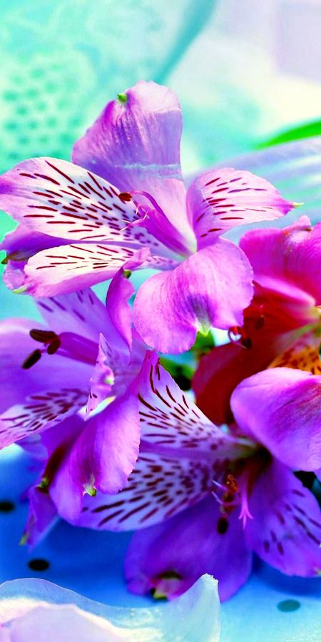 Lavender Iris Bloom Wallpaper is a vibrant phone background featuring colorful iris flowers in shades of pink, lavender, and soft earth tones.