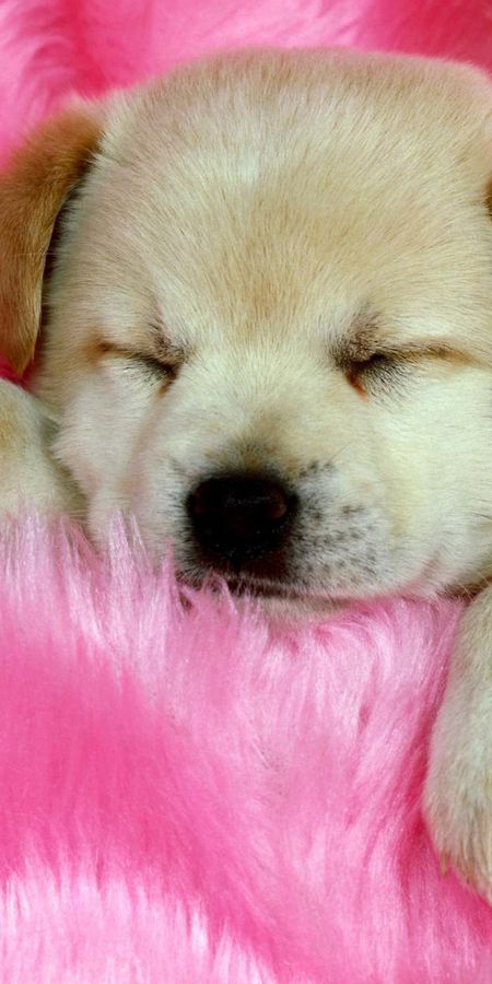 Cute Sleeping Labrador Wallpaper is an adorable phone background featuring a peaceful puppy resting against a soft pink backdrop.