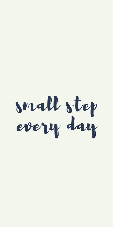 A minimalist wallpaper featuring the motivational phrase small step every day in elegant navy blue cursive font on a soft beige background.