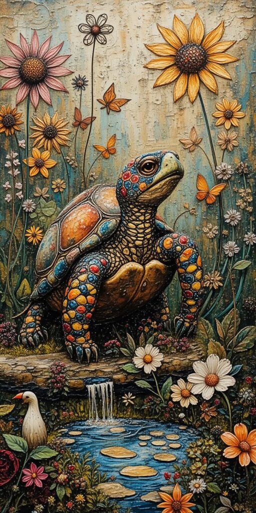 Handmade miniature painting of a whimsical elf in a vibrant autumn forest, richly detailed and magical.