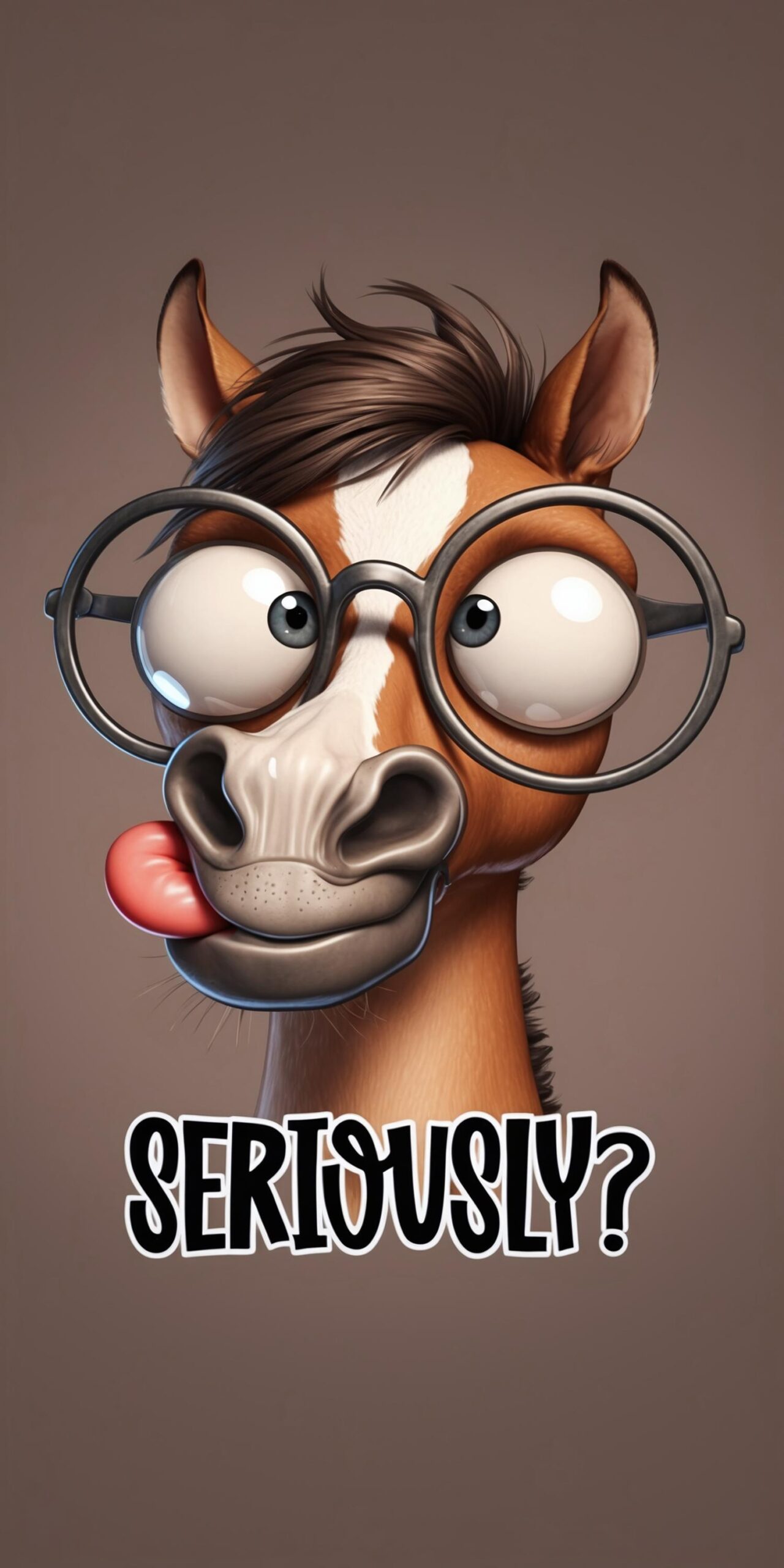 Seriously Funny Horse Wallpaper is a playful digital drawing featuring a cartoon horse with a brown coat, a white facial stripe, and oversized round glasses.