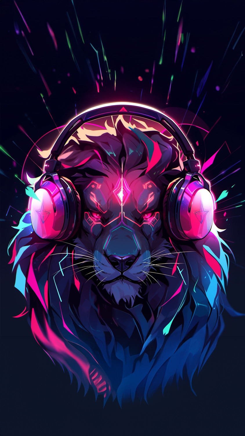 Neon Cyberpunk Lion Wallpaper is a vibrant digital illustration depicting a lion’s head glowing with futuristic neon energy.