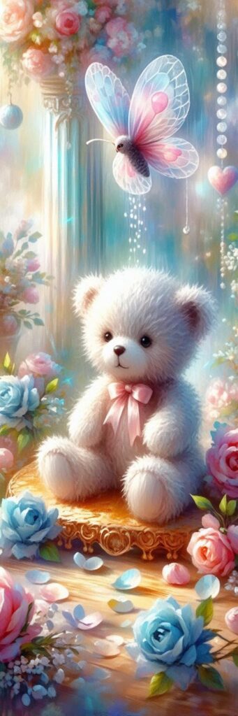 Peekaboo Teddy Bear Wallpaper is an adorable photograph featuring a beige, fluffy teddy bear peeking out from behind a pink door.