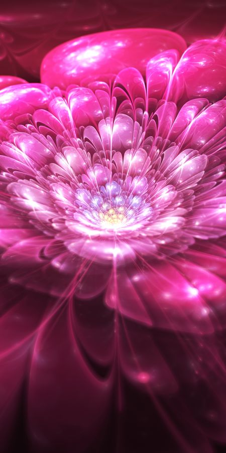Surreal Magenta Bloom Wallpaper is a mesmerizing digital artwork showcasing an abstract, flower-like structure that blends deep magenta and pink tones in intricate, swirling patterns.