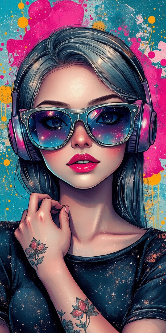 Reflective dark Apple logo splashed with vibrant paint, glowing bokeh background, modern futuristic tech aesthetic.