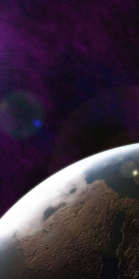 A stunning wallpaper featuring a purple-hued planet with a mystical atmosphere, surrounded by vibrant violet skies.