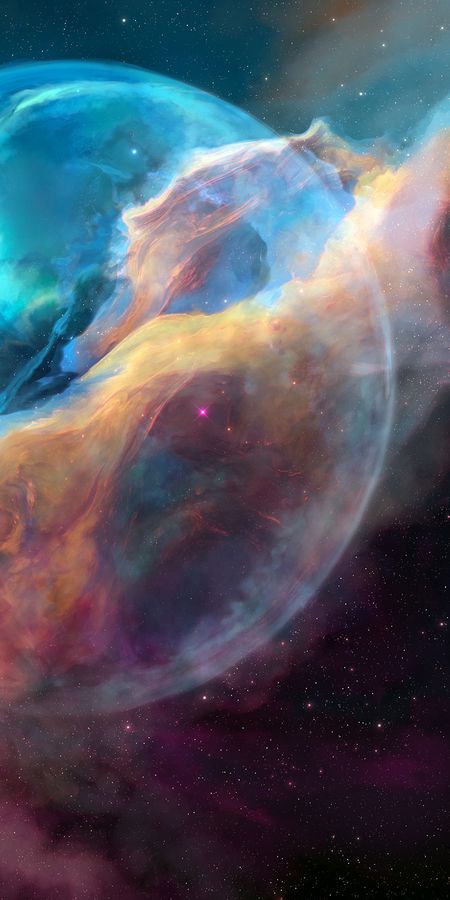 A vibrant sci-fi phone wallpaper featuring a glowing nebula, distant planets, and scattered stars. The mix of vivid colors creates a dreamy, cosmic atmosphere.